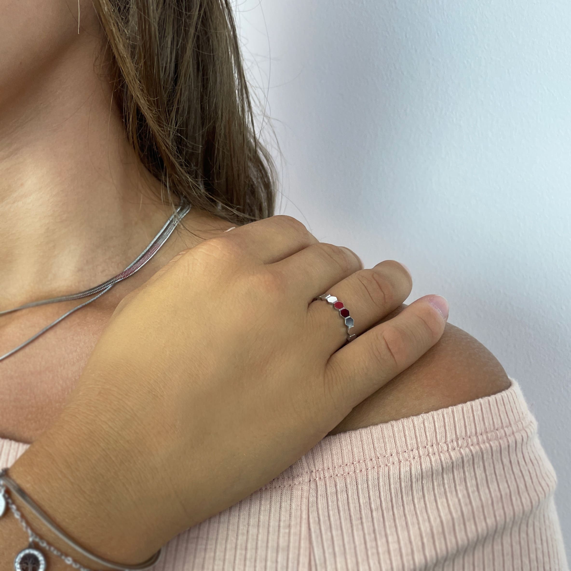 Anel em aço com design inspirado em hexágonos . Este anel é ajustável através de aperto.