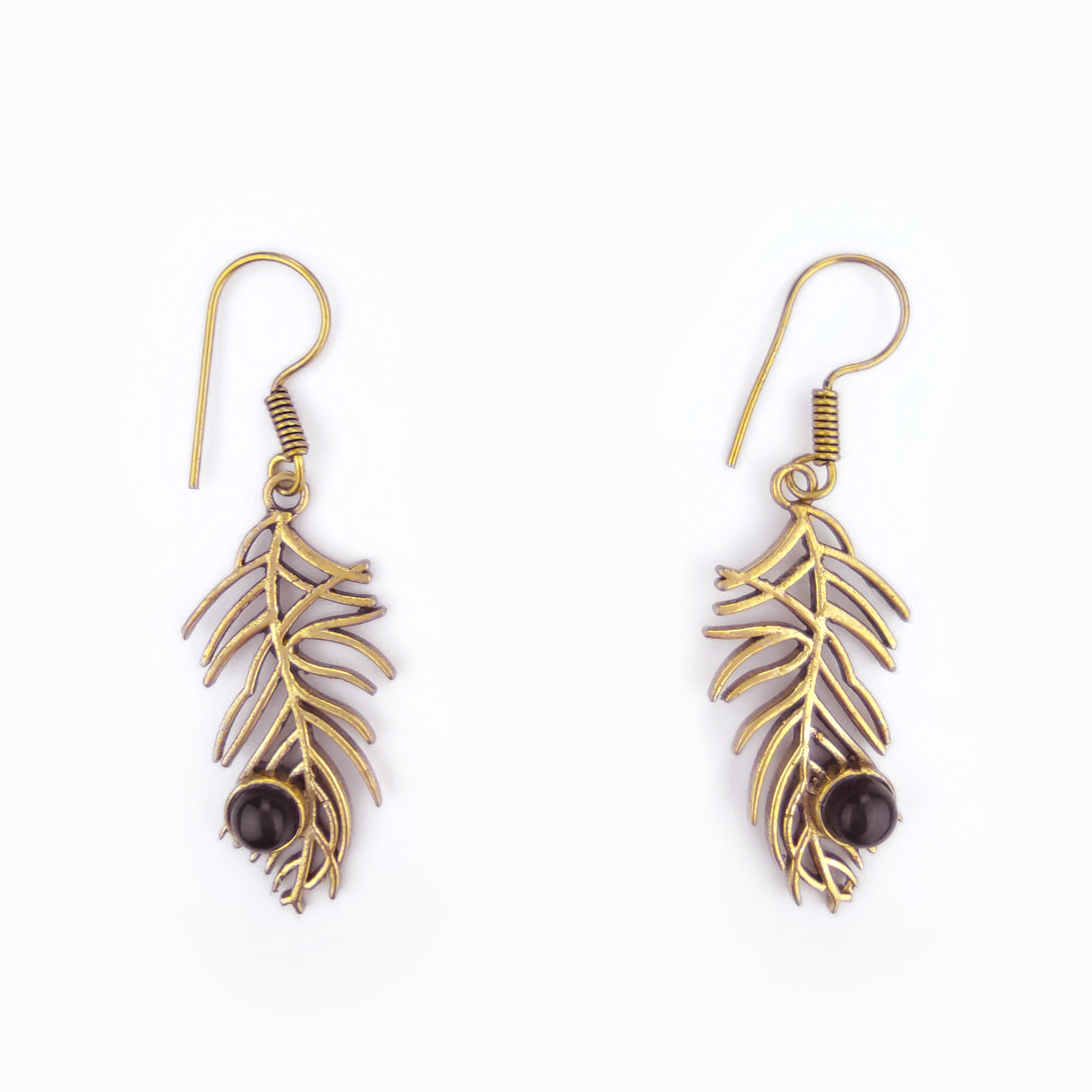 Brincos gancho em forma de folha ornamentada com uma pequena pedra acrílica .