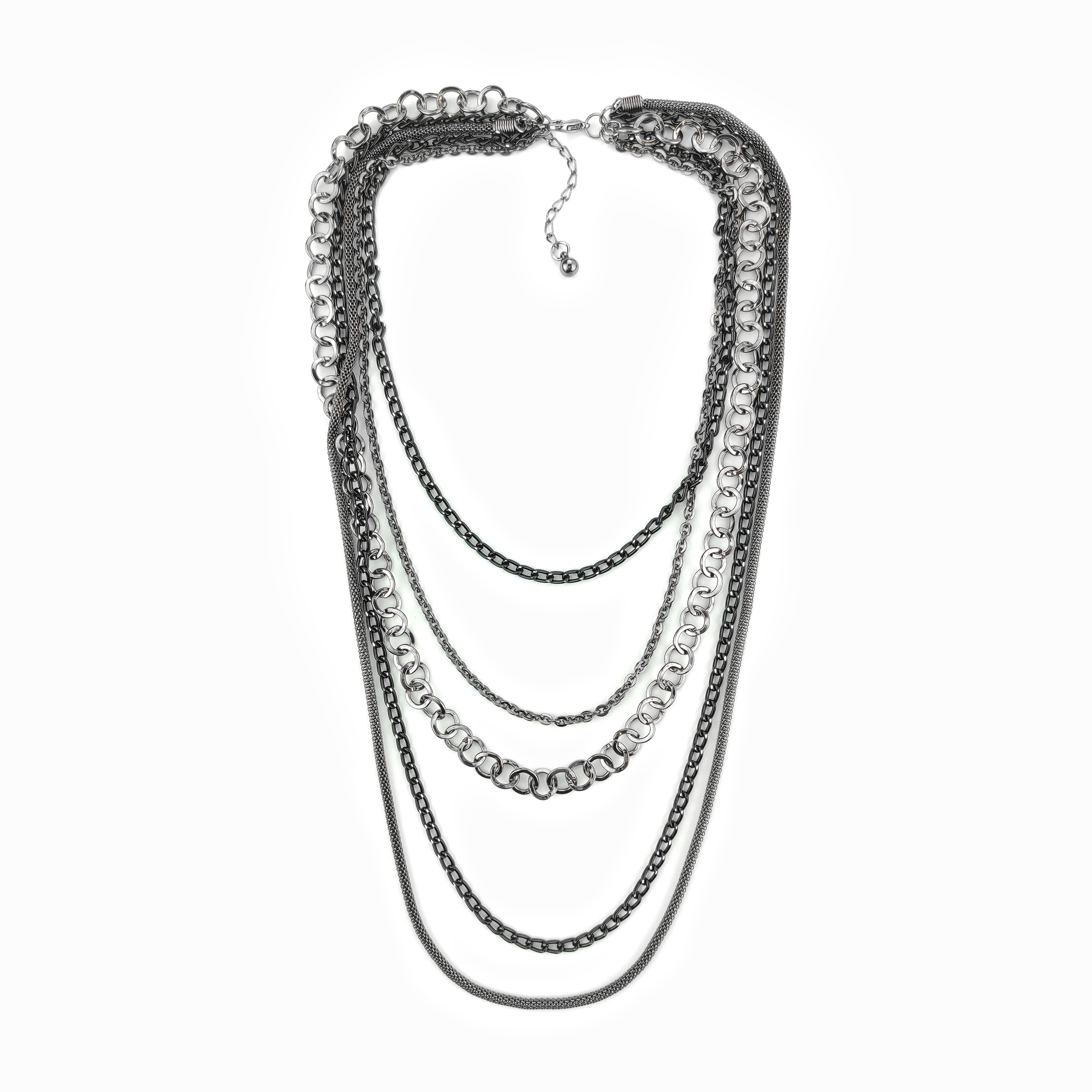 Colar em metal composto por 5 correntes originais de diferentes tamanhos.
