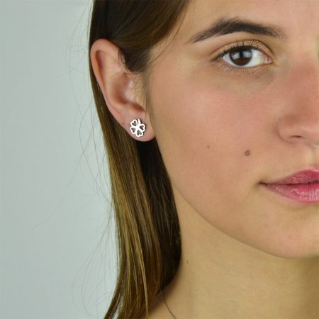 Colar duplo em aço ornamentado com trevos da sorte e pérolas.