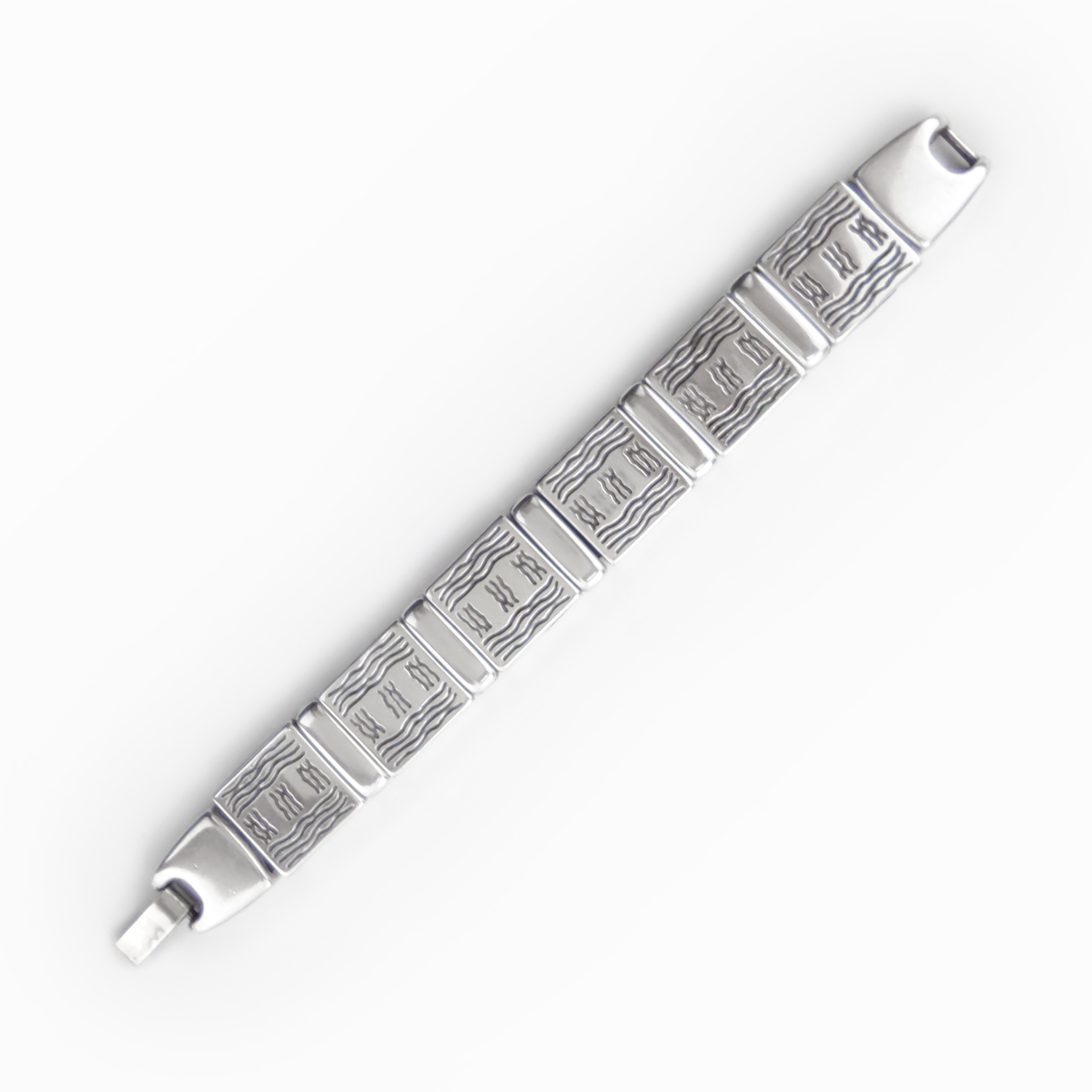 O fecho desta pulseira é em forma de gancho que se torna impercetível depois de fechado proporcionando conforto na utilização.