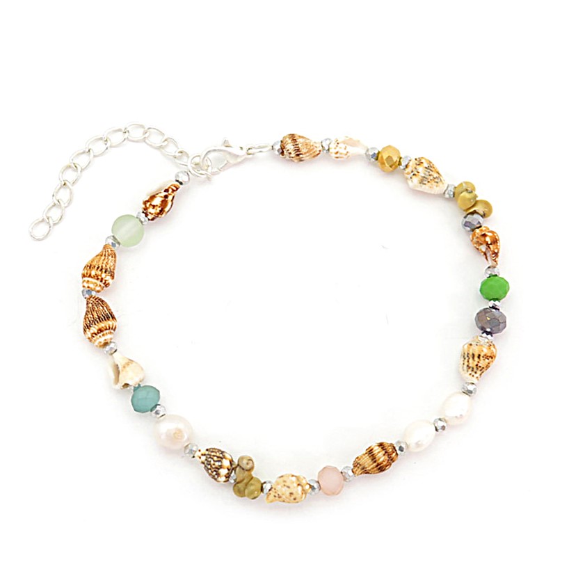 Tornozeleira Boho com Conchas Naturais e Pedras Coloridas